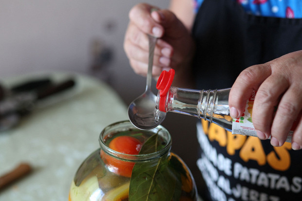 В самом конце наливаю 1 столовую ложку 70%-ной уксусной кислоты. Нужна строго она, с остальным я не экспериментирую, чтобы банки не взрывались.