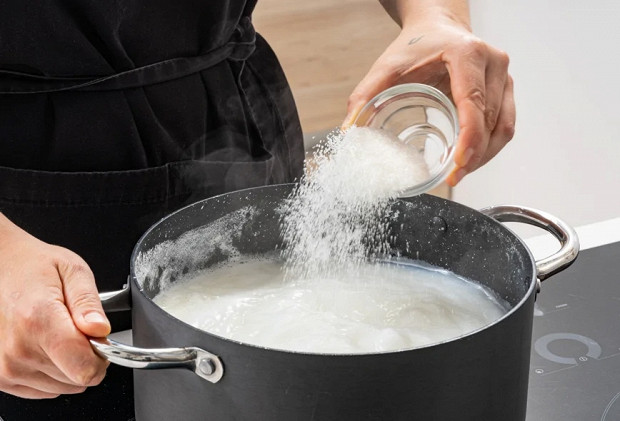 Наполните кастрюлю наполовину водой и доведите воду до кипения.