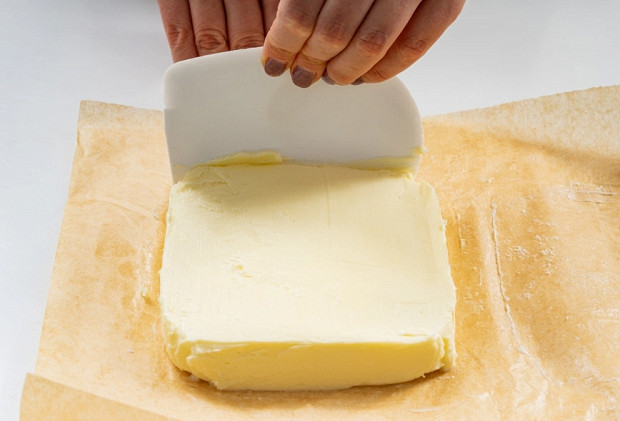 Придайте маслу нужную форму — брусочка или конфеты-батончика — и заверните в бумагу для выпечки.