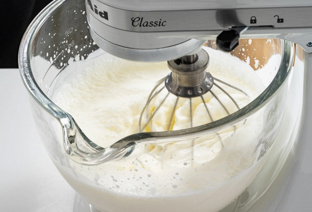 Следите за состоянием сливок: через 2–3 минуты они напитаются воздухом, увеличатся в размерах, загустеют и начнут держаться на венчике. В таком состоянии из них можно сделать шапочку на пирожном или прослойку для торта. Если же ваша цель взбить масло, продолжайте работать миксером.