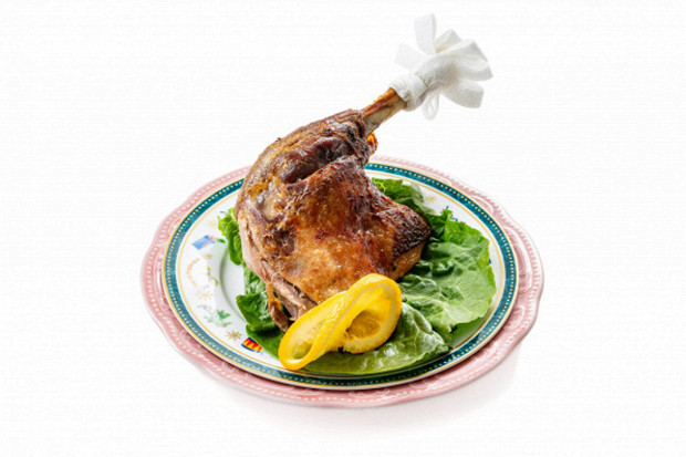Снимите с противня фольгу, смажьте гуся апельсиновым соком и запекайте ещё час, периодически смазывая его соком или вытопившимся жиром с противня.
