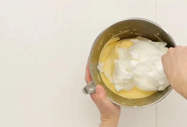 Аккуратно смешайте белки с сырной смесью, стараясь сохранить массу объемной.