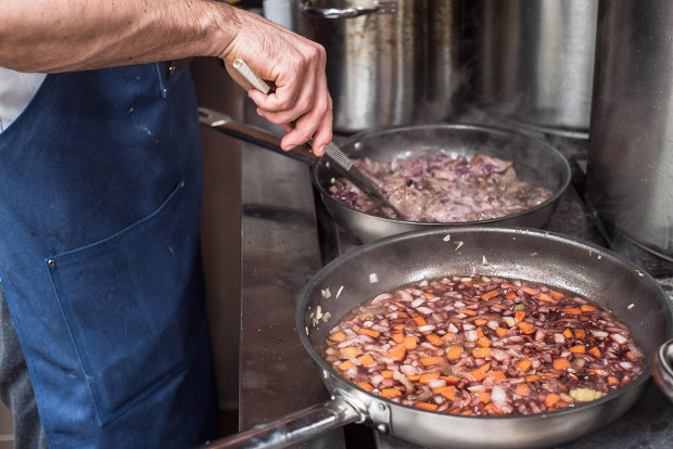 И обязательно добавляйте печень, я ее воспринимаю как приправу, вкусовую добавку, а еще именно она отвечает за кремообразную текстуру паштета. Например, в Cacciatore я готовлю паштеты из дичи: они на 70% состоят из мяса, а печень служит своего рода специей. Еще я использую овощи для цвета и вкуса, грибы для аромата, много алкоголя как приправу, но совсем не использую сливки, предпочитаю сливочное масло. Сейчас все увидите.