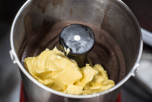 Именно сейчас самое время добавить полностью размягченное сливочное масло.