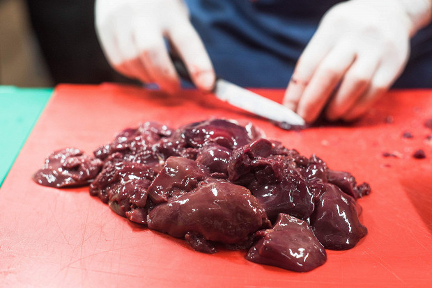 «Я расскажу, как работает технология, на примере паштета из куриной печени, очень доступного и понятного продукта. Таким же образом можно приготовить паштет из любого мяса и субпродуктов — языка, сердца, легких, всего, что можно перемолоть.
