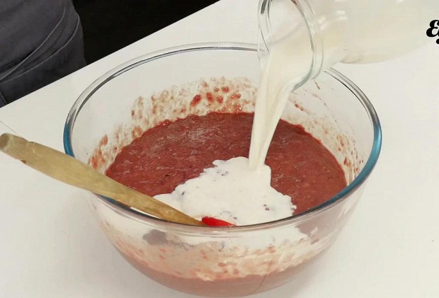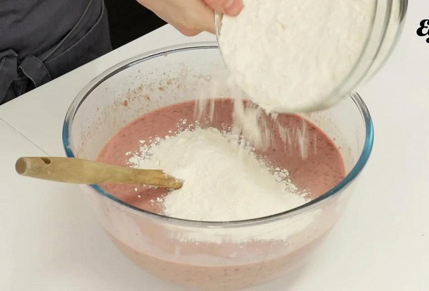Посолите, поперчите, добавьте 350 грамм муки и снова вымешайте фарш. В финале консистенция у него должна получиться как у блинного теста, то есть достаточно текучая.