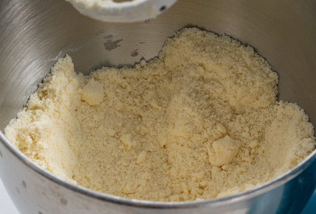 Перетрите все в миксере, пока на получится мелкая масляная крошка.