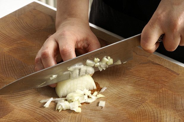 Оставшуюся половинку луковицы нарежьте мелкими кубиками.