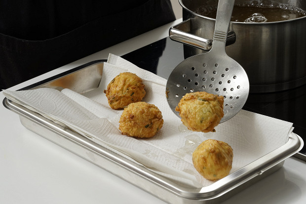 Выговорить название сложно, а рецепт на самом деле элементарный, готовить эти пухлые кругляши ничуть не сложнее, чем домашние оладьи, даже проще: не нужно следить и успевать переворачивать подрумянившиеся кусочки теста на сковородке, а просто закинуть в кипящее масло, выловить и обсушить на бумажном полотенце от лишнего жира, чтобы легкая закуска не превратилась с калорийную бомбу.