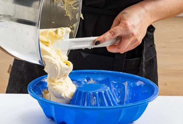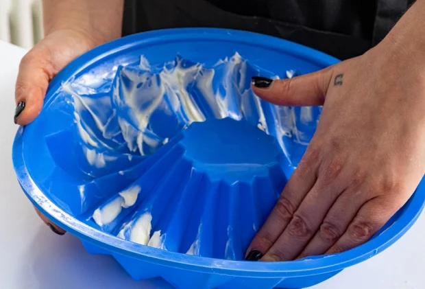 Смажьте форму для кекса оставшимся сливочным маслом. Форма может быть какой угодно — силиконовой, нержавейкой, покрытой тефлоном. Главное, чтобы она была предназначена для духовки.