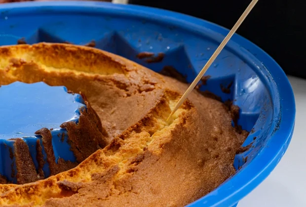 Выпекайте кекс при 180 градусах 35–40 минут. Проверить готовность кекса можно с помощью деревянной шпажки: если она выходит из теста сухой, значит, кекс готов.