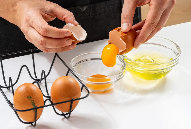 У яиц отделите белки от желтков. Для панкейков понадобится 4 белка и 2 желтка. Два желтка для панкейков не понадобится, их можно заморозить или приготовить с ними заварной крем, с которым потом панкейки подать.