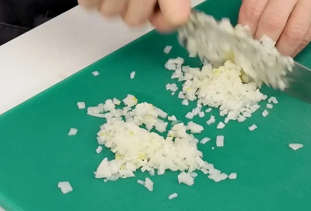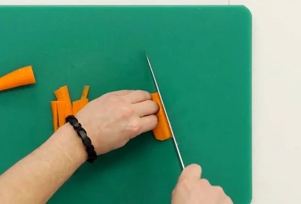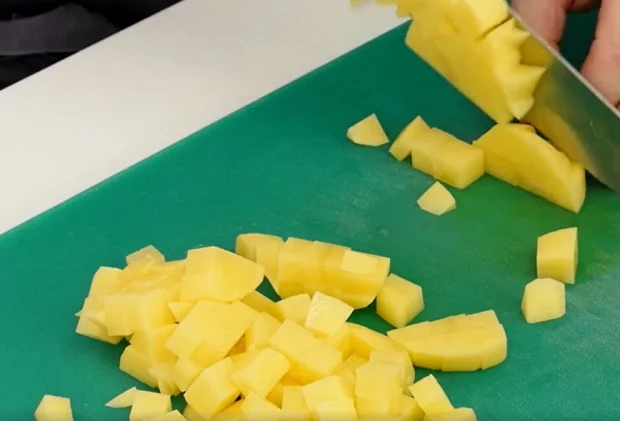 Очистить и так же, мелким кубиком, нарезать морковь.