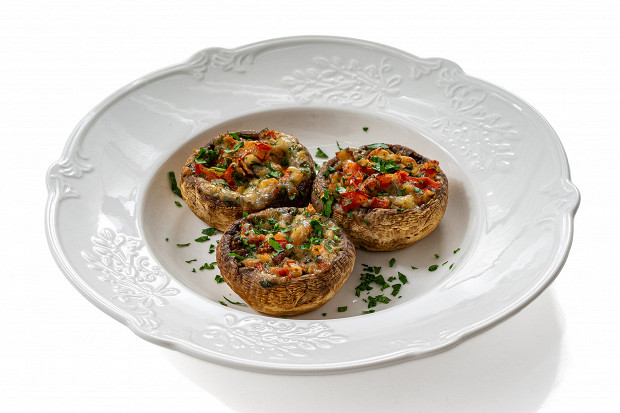Фаршированные шампиньоны, запеченные в духовке, — универсальная закуска. Они могут стать теплым началом обычного ужина, обедом на скорую руку или закуской на праздничный стол. Готовится эта закуска легко и из простых продуктов, но при желании вы можете добавить специи, поэкспериментировать с разными сырами — в общем, это не просто рецепт, а бесконечное количество разных блюд и точка приложения кулинарной фантазии.