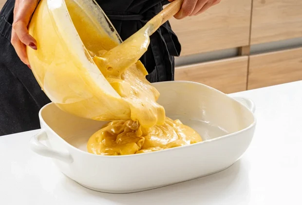 Переложите тесто в смазанную сливочным маслом форму для выпечки и отправьте в духовку, разогретую до 170 градусов, на 1 час.