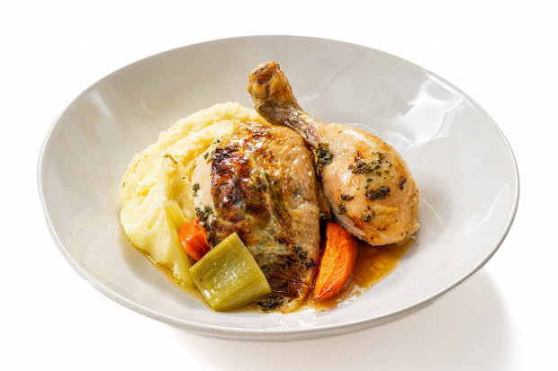 Курица, если ее приготовить хорошо, запросто может стать главной на праздничном столе — и уже вокруг нее будут выстраиваться гарнир, закуски и выбор алкоголя. Этот рецепт, во-первых, красивый, а во-вторых, позволяет вывести куриную грудку из разряда диетического питания. Грудке достается много масла, трав, пряных ароматов, и она станет одной из самых интересных частей птицы. Ниже — пошаговый мастер-класс, который поможет вам водрузить на новогоднем столе идеальную курицу, лучшую из лучших.