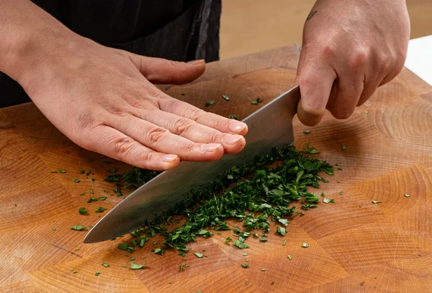 Так же мелко нарубить петрушку.