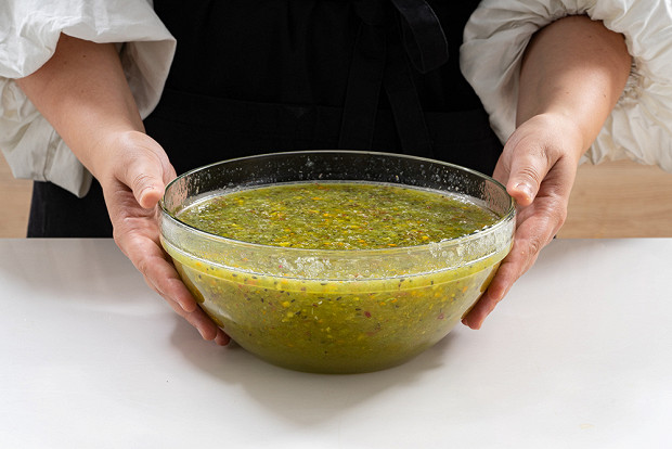 Таким же способом измельчите апельсин и соедините с крыжовником.