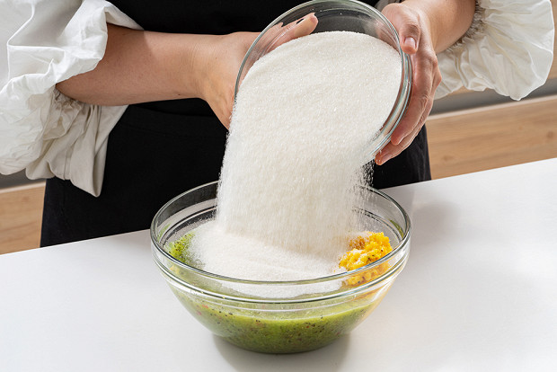 Протертые ягоды с сахаром недаром называют «живым» вареньем. Это легкий компромисс для тех, кто любит сладкое, но не забывает и о пользе. Ведь измельченные ягоды не подвергаются термической обработке и, значит, сохраняют в целости и сохранности все на самом деле «живые» витамины. Особенно витамин С — он при варке разрушается первым. А соединив в одном рецепте крыжовник и апельсин, вы в буквальном смысле удваиваете дозу этого важнейшего антиоксиданта, который не только помогает бороться с простудами и вирусами, но и отвечает за эластичность сосудов и отсрочивает старение кожи (вполне научный факт!).