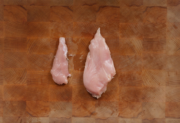 Грудка состоит из двух филе — большого и малого. Малое скрыто внутри и при необходимости легко отделяется от основной массы.