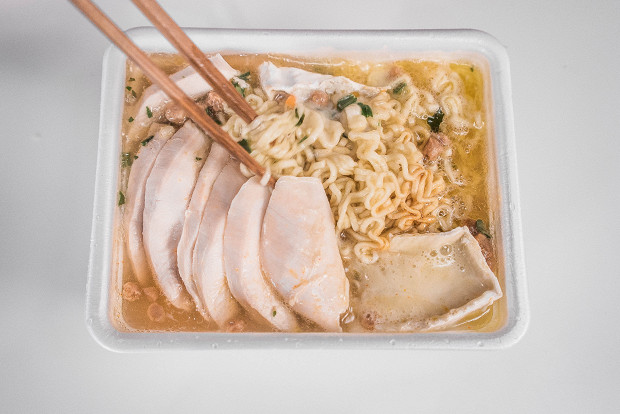 Во-вторых, одно из моих любимых блюд — рамэн, пшеничная лапша с бульоном. Обычно для нее я покупаю корейскую лапшу шин рамэн (ее надо немного проварить, в отличие от доширака, который заваривается). Пока лапша варится, можно делать с ней всякие вкусные манипуляции — добавлять сливочное масло, яйцо пашот. Получается первое и второе блюдо в одном флаконе. Из доширака же можно соорудить походный вариант рамэна, чем мы сейчас и займемся.