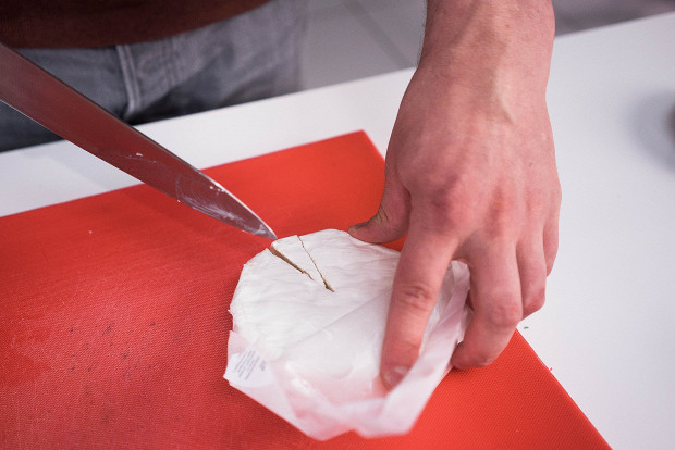 Сыр нужно брать плавкий, чтобы в кипятке он быстро потек. Можно воспользоваться бюджетным вариантом — плавленым сыром, уже разделенным на слайсы. А можно пойти более гастрономическим путем и взять, например, камамбер: корочки останутся, а внутренность его в кипятке разойдется.