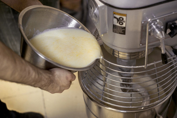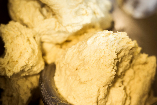 Я советую брать масло с минимальной влажностью, чтобы не добавлять в тесто лишнюю воду. Мы используем масло жирностью 86 %.