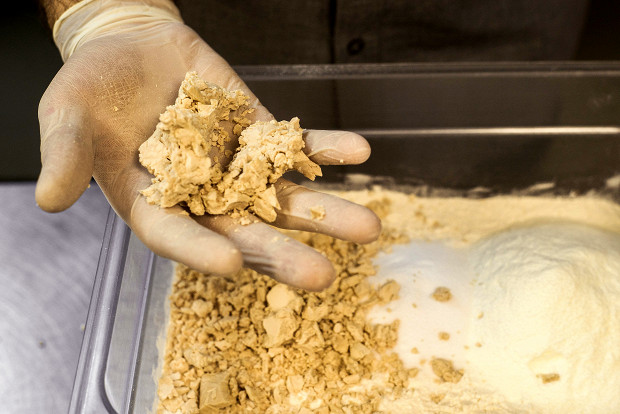 Мы используем сухое молоко, для того чтобы повысить жирность теста, не добавляя лишнюю влагу, ведь это по сути жирный порошок.