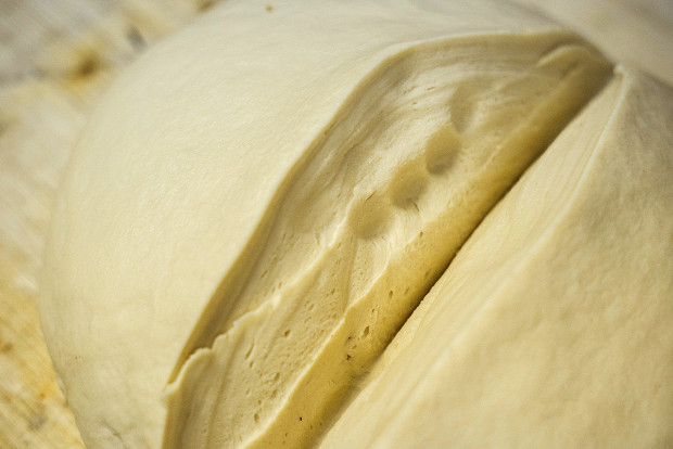 Если разрезать кусок теста, внутри вы увидите мелкие пузырьки. Вот такое тесто нам и нужно.