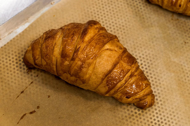 Этот круассан совсем чуть-чуть перестоял. Он неправильный с точки зрения стандартов и традиционных рецептур, но это очень крутой и вкусный круассан.