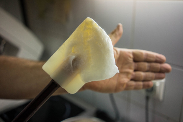 Правильная пена не стекает с лопатки, а стоит клювиком — это наша кондитерская терминология.