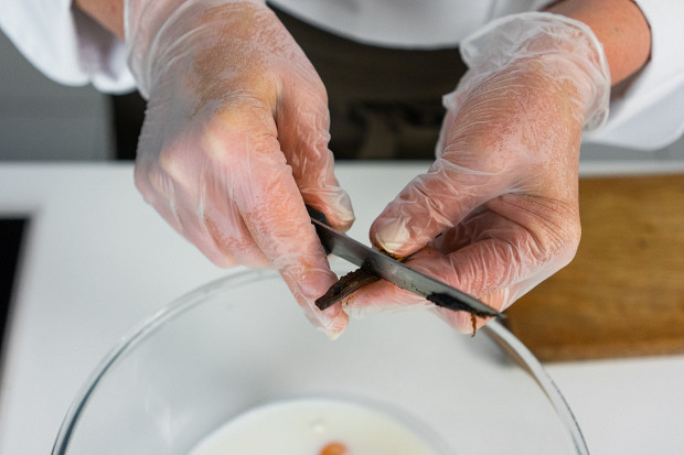 Добавьте зерна половины стручка ванили. Я всегда за натуральную ваниль. Она дает потрясающий аромат.