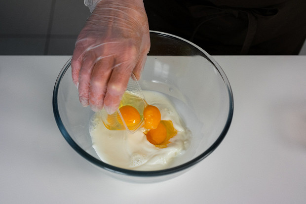 Налейте в емкость 250 мл 3,2%-ного молока. Молоко, как и все остальные ингредиенты, должно быть комнатной температуры.
