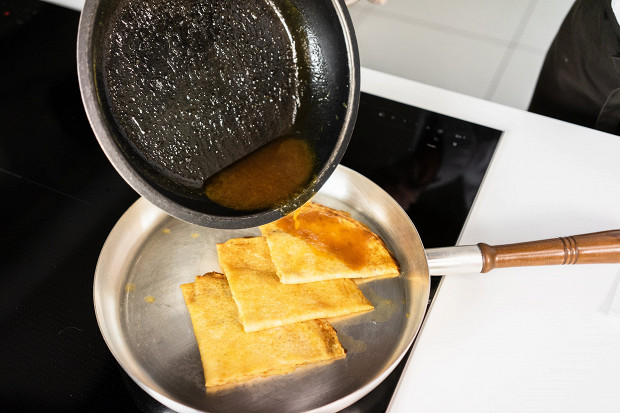 Как сделать креп-сюзетт дома, показывает шеф-кондитер ресторана «Brasserie Мост» Галина Солодухина.