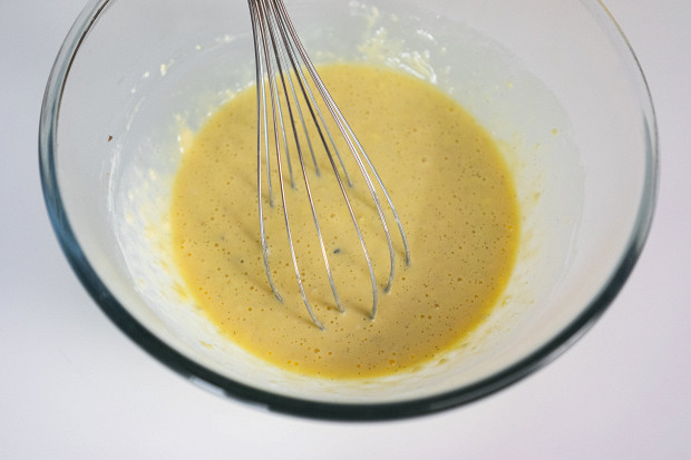 Добавьте 2 яйца и 1 желток, 12 грамм сахара, 3 грамма соли, 12 грамм размягченного сливочного масла и 125 грамм пшеничной муки высшего сорта. Можно все это добавлять в любом порядке, потому что в конце тесто я пробью блендером и протру через сито.