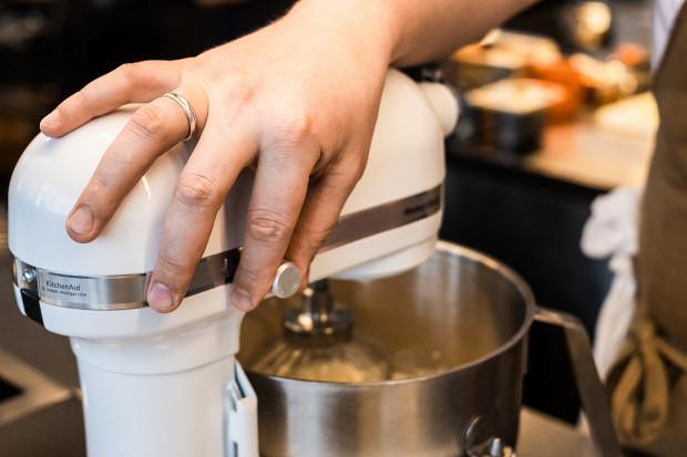 Замесите тесто. Скорость миксера не имеет значения. Замешивайте минут десять, пока тесто не станет густым, упругим, кремообразным, но все еще жидковатым. Если, на ваш взгляд, оно слишком густое, добавьте молока.
