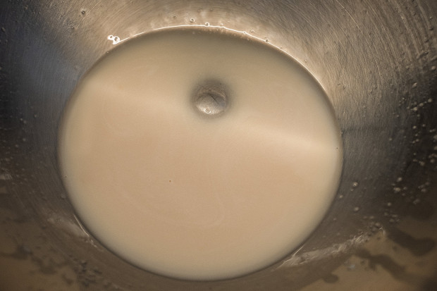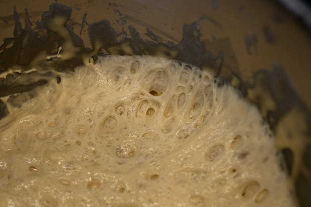 Этот этап нужен для того, чтобы дрожжи заработали, зажили своей жизнью. Собственно, пышность нашему тесту придают результаты их жизнедеятельности. Дрожжи питаются сахаром, а дырки в тесте образуются за счет выделения ими углекислого газа. Сахара есть и в пшеничной муке, и в молоке, но их недостаточно, чтобы дрожжи быстро подняли тесто, поэтому весь процесс начинается со смешивания дрожжей и сахара.