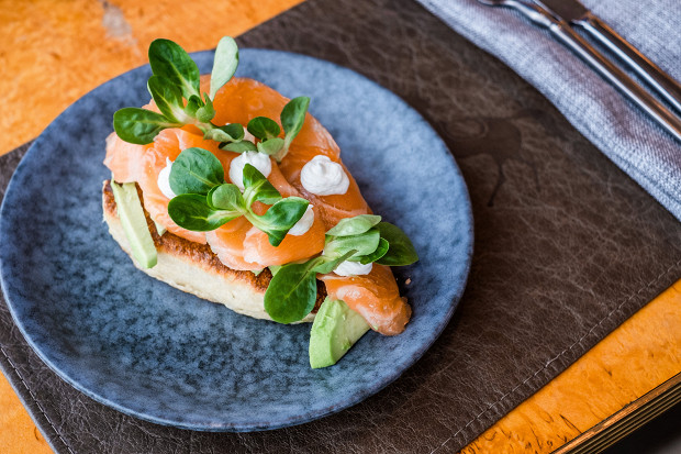 Как я уже говорил, оладьи можно использовать и в качестве десерта, и в качестве закуски. Я люблю оладьи с соленым лососем, авокадо и сметаной.