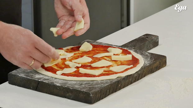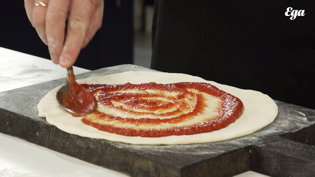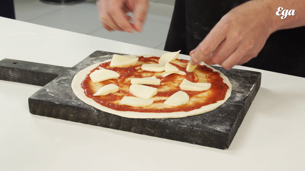 Моцареллу нужно брать твердую, с жирностью не выше 40%, иначе с готовой пиццы будет капать масло. Не нужно натирать моцареллу на терке. Нарежьте ее кусками такой же толщины, какая будет у теста, чтобы время готовки теста совпадало со временем плавления сыра. Если соблюсти это правило, то моцарелла будет тянуться, — а все всегда только этого и ждут. Тянется моцарелла тогда, когда она не перекипит. Что касается томатного соуса: не рекомендую брать обычную томатную пасту, советую брать готовый томатный соус для пиццы, в который уже добавлены травы. Кому не нравится — можно купить просто томатный, без трав. А обычная томатная паста обладает большой кислотностью, и это может привести к изжоге.
