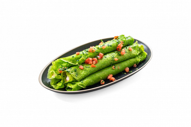 Один из самых интенсивных природных зеленых красителей — это шпинат. Чтобы хорошенько прокрасить блины, нужно взять 150 грамм шпината, сделать из него пюре, соединить с мукой и яйцом и превратить все это в тесто жизнерадостного зеленого цвета.