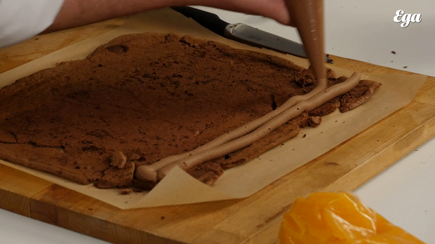 Так же поступите со вторым бисквитом. У вас должно остаться в мешке еще немного шоколадного крема.