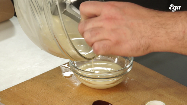 Взбейте 180 грамм желтков и 100 грамм сахара. Затем отдельно взбейте 300 грамм белков. Желтки нужно взбивать первыми; если взбивать первыми белки, они успеют осесть.