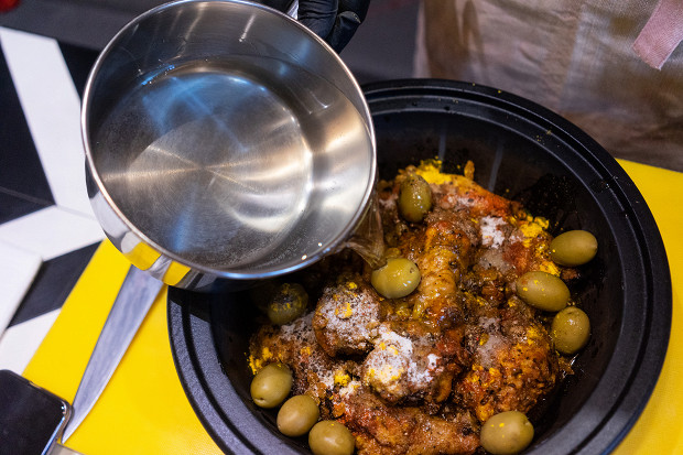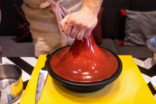 То, что происходит в тажине с продуктами, — томление, не тушение. Одно разновидность другого, но при тушении продукты готовятся в небольшом количестве кипящей жидкости. Томление — это готовка на грани, когда уже горячо, но жидкость еще не кипит. Это позволяет, например, не убить аромат специи: некоторые при высоких температурах закрываются, а не открываются.