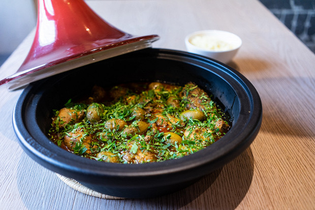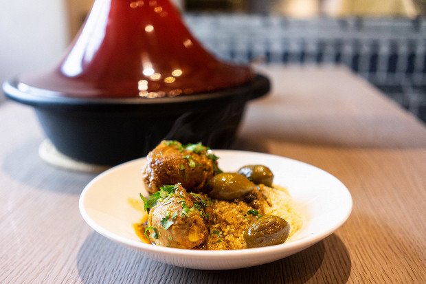 Тажин — традиционное блюдо североафриканских народов. В тажине, керамической миске с конусообразной крышкой, продукты томятся столько, сколько нужно, чтобы мясо превратилось в нежную субстанцию, тающую на языке, а специи, которые в Марокко, Алжире и Тунисе очень любят, отдали ему все свои ароматы и вкусы.