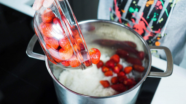 Я покажу, как делаю варенье из клубники с черным перцем и лимонным соком. Острое со сладким — это очень интересное вкусовое звучание. Думаю, что перец можно сочетать с любым сладким антиподом — с малиной, шелковицей, черешней. Я решила добавить лимонный сок, потому что он убирает некоторую приторность клубники.