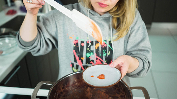 Проверьте варенье на готовность традиционным способом: капните на тарелку и посмотрите, как растекается капля. Если варенье тягучее и вязкое — все, готово!