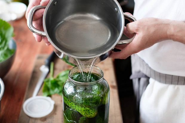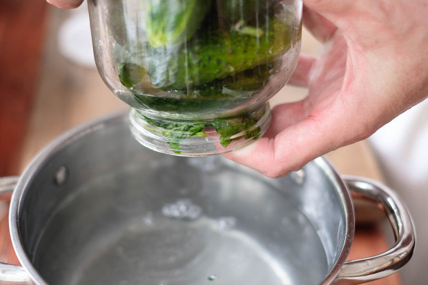 Заливаем огурцы нашим крутым соляным раствором.
