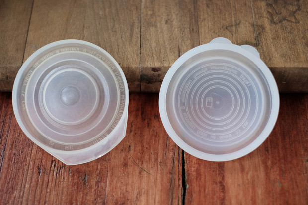 Прежде чем я его опишу, я вам крышки покажу. Вот такой пластиковой крышкой, какая с левой стороны, закрывать огурцы нельзя, а такой, какая справа, — можно. Она очень хорошо впивается в банку и уж не отпустит ее.