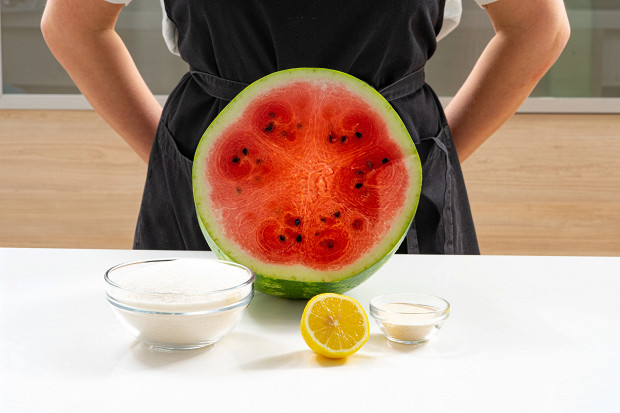Подготовьте все ингредиенты: килограмм арбуза, полкило сахара, 20 грамм пектина и половину лимона. Так как у арбуза нет ярко-выраженного вкуса, то арбуз обязательно должен быть спелым и сладким. Варенье же из неспелого арбуза будет скучным, а если честно, просто безвкусным.