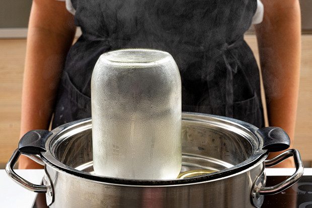 Стерилизуйте банки и крышки над паром в течение 15 минут.